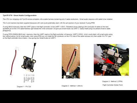 Da qualche tempo ho costruito e sto imparando a volare con questo drone…recentemente approfondendo un paio di argomenti quale ad esempio il settaggio di banda e canale e potenza della VTX, mi sono imbattuto in questa faccenda: In pratica dopo luglio 2020, eachine ha aggiornato la vtx del tyro79. La nuova ha la possibilità di installare smart audio, ma il connettore in dotazione ha solo tre cavi e non il quarto necessario per smart audio appunto. Cercando in rete mi sembra di avere capito che questa mancanza deriva dal fatto che (cito testualmente): “il cablaggio a 3 core è stato fornito perché un 4 ° core potrebbe potenzialmente entrare in conflitto con la posizione uart del ricevitore se si utilizza PPM”.